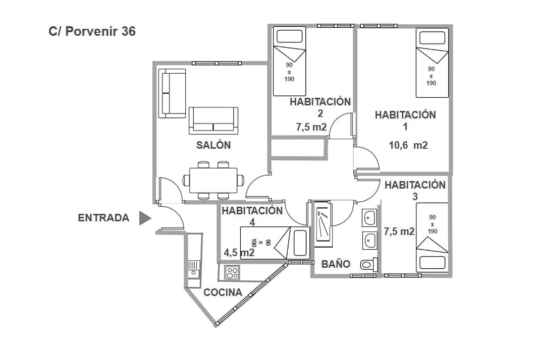 Se trata de una vivienda de 4 habitaciones en la que podrás disfrutar de la convivencia con tus compañer@s. Además dispondrás de amplias habitaciones, que hará que las jornadas de estudio sean mas fáciles de llevar. Tendrás todo lo que necesites. La cocina y todos los ventanales han sido reformados durante el verano de 2023.